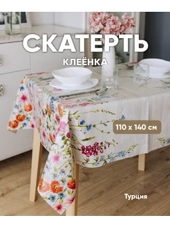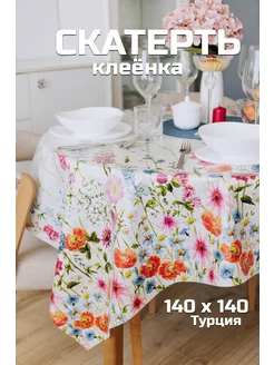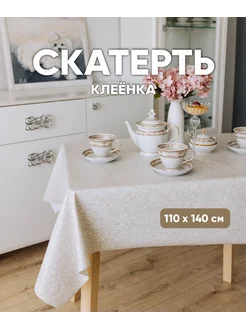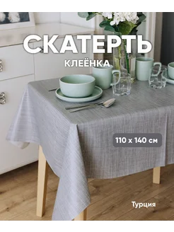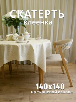 Скатерть клеенка на стол 140 на 140 белая с серым