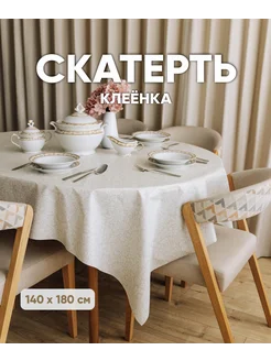 Скатерть клеенка на стол 140х180 бежевая под лен