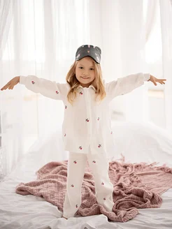 Пижама муслиновая со штанами и рубашкой с вышивкой