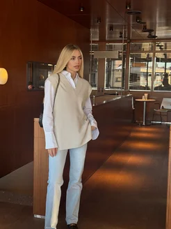 Жилетка вязаная оверсайз теплая безрукавка в школу