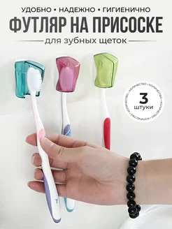 Футляр колпачок для зубной щетки на присоске, 3 шт