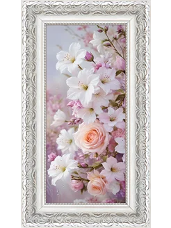 Картина интерьерная 27х57 см в серебристо-белой рамке