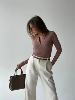 Облегающий лонгслив в рубчик с длинным рукавом