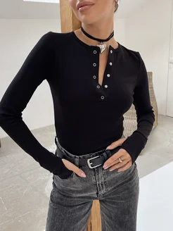 Лонгслив на кнопках с вырезом для пальца