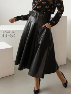 Юбка расклешенная миди экокожа