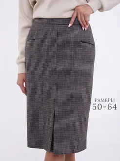 Юбка прямая в клетку миди офисная
