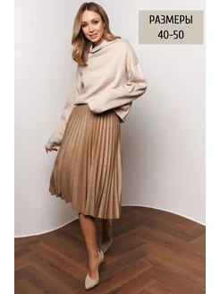 Юбка на осень офисная теплая миди замшевая плиссе гофре