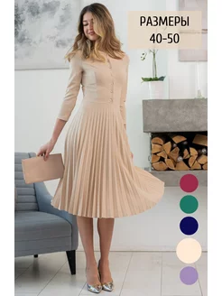 Платье с юбкой плиссе гофре трикотажное офисное нарядное