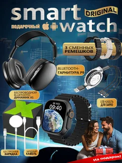 Смарт часы в наборе 9 в 1,Наушники беспроводные P9 Pro Max