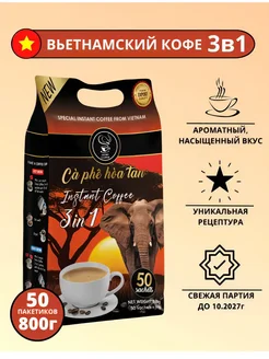 Вьетнамский растворимый кофе 3в1 в пакетиках, 50 штук по 16г