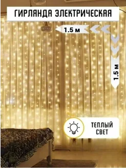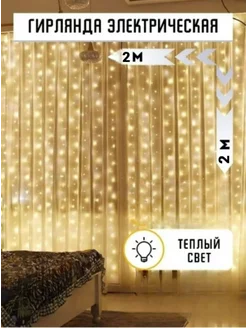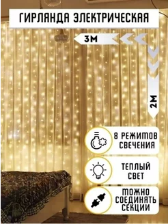 Гирлянда штора 3х2 тепло-белый на окно новогодняя