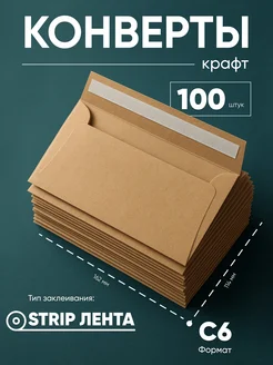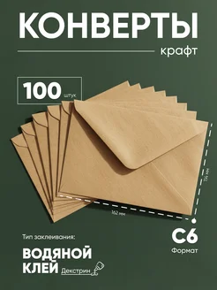Крафтовый бумажный почтовый конверт С6 100 штук