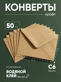 Крафтовый бумажный почтовый конверт С6 50 шт