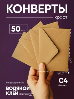 Крафтовый бумажный почтовый конверт С4 50 штук
