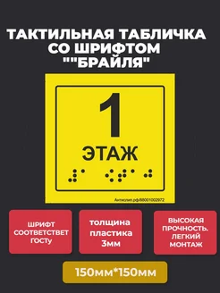 Тактильные таблички со шрифтом Брайля "Номер этажа" 15*15см
