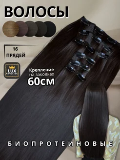 Накладные волосы на заколках темно коричневый холодный