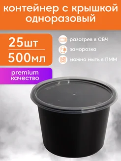 Контейнеры одноразовые пластиковые с крышкой 500 мл 25 шт