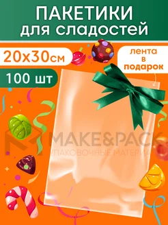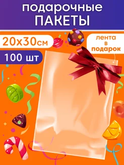 Пакет подарочный прозрачный для сладостей в сад 20х30 100 шт