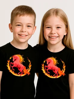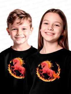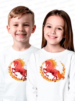Лонгслив детский с принтом хлопок Огненная лошадь
