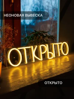 Неоновая вывеска Открыто, 40х9 см, желтая