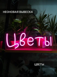 Неоновая вывеска Цветы, 40х15 см, розовая