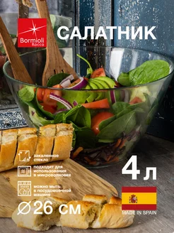 Салатник стеклянный большой, миска для смешивания 4 л, 26 см