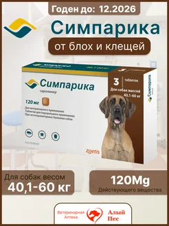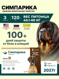 Симпарика 3 таблетки по 120мг на вес 40,1-60 кг