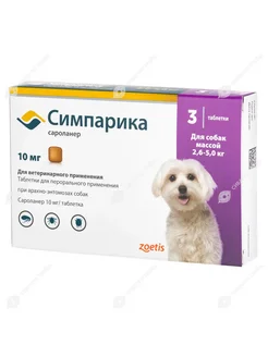 Симпарика 10 мг для собак 2,5кг- 5кг,3 таб. для мелких пород