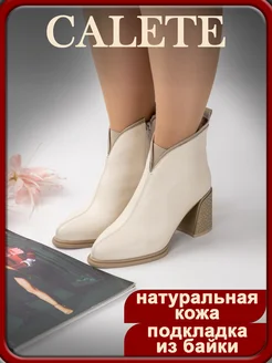 Ботильоны кожаные с байкой на каблуке