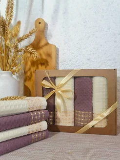 Полотенца кухонные вафельные набор подарочный 4 шт