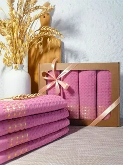 Полотенца кухонные вафельные в подарок 4 шт. Набор