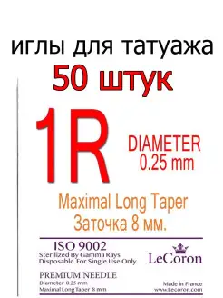 Иглы для перманентного макияжа, татуажа 1R LeCoron 50 шт