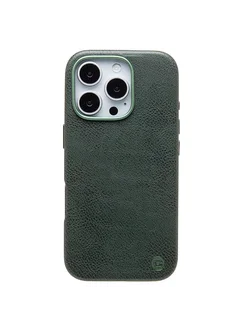 Чехол iPhone 16 Pro натуральная кожа MagSafe темно-зеленый