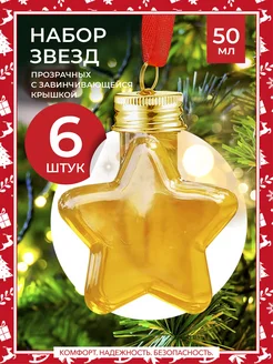 Набор прозрачных ёлочных звёзд 6 шт. - 50 мл