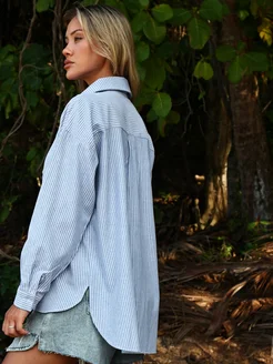 Рубашка оверсайз в полоску удлиненная