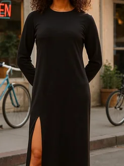 Платье длинное с разрезом трикотажное