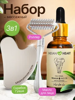 Массажное масло для лица, роллер и скребок Гуаша