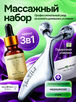Массажный набор масло для лица, роллер и скребок Гуаша