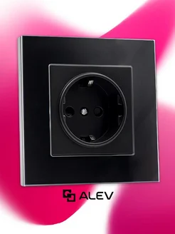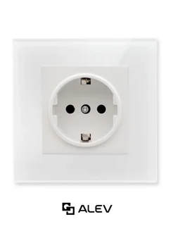 Розетка с заземлением одинарная из закаленного стекла