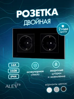 Розетка с заземлением двойная из закаленного стекла