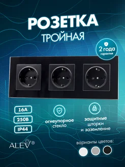 Розетка с заземлением тройная из закаленного стекла
