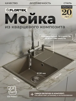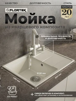Мойка для кухни каменная из кварца 62х48, Riley 620 Desert