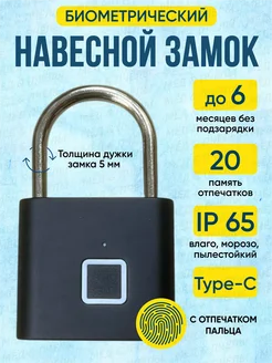 Замок умный навесной с отпечатком пальца биометрический