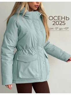 Куртка осенняя парка с капюшоном удлиненная