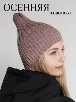 Шапка осенняя вязаная тыковка