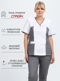 Медицинский костюм стрейч без застежки большой размер