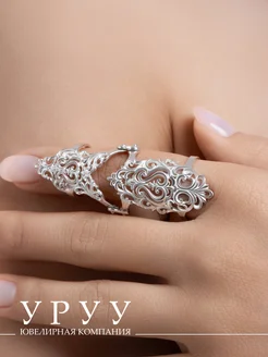 Кольцо на две фаланги серебро 925 пробы этно украшение