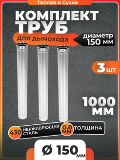 Труба для дымохода 150мм 1м, 0.8 мм комплект 3 шт