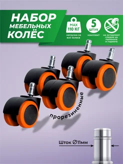 Колесики для кресла усиленные, прорезиненные, 5 шт