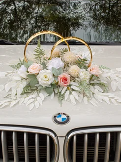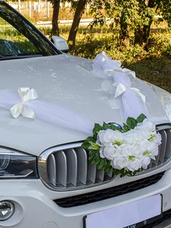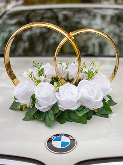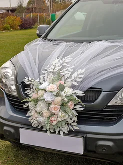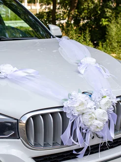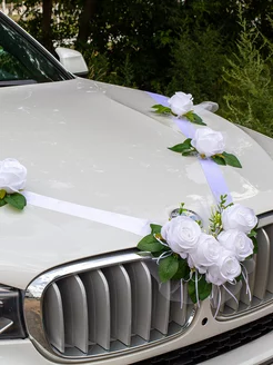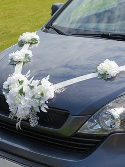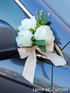Свадебное украшение машины на ручки и зеркала молодоженов